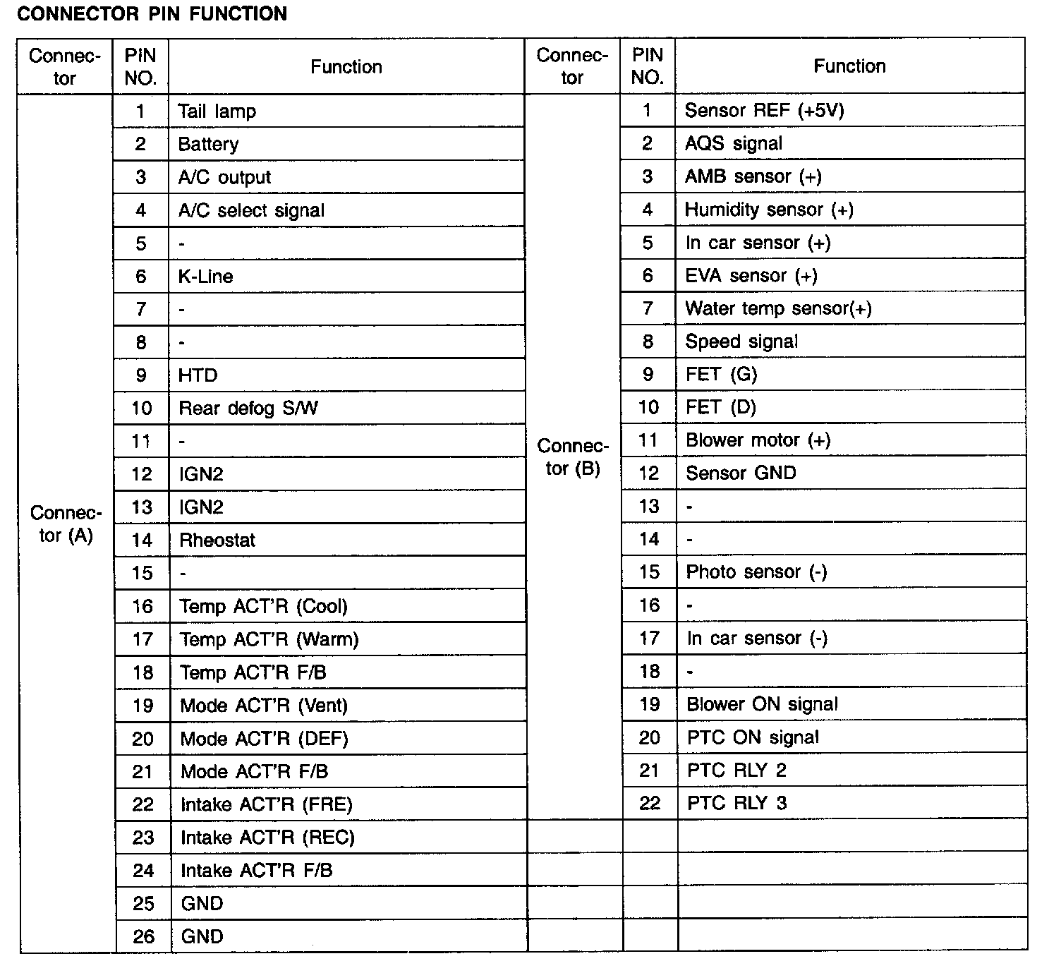 Connector Pin Function: