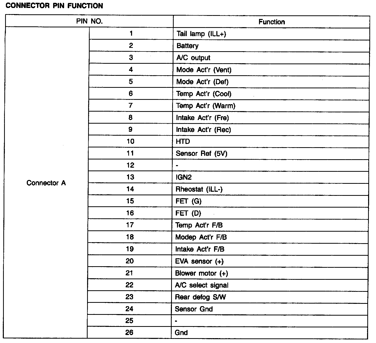 Connector Pin Function: