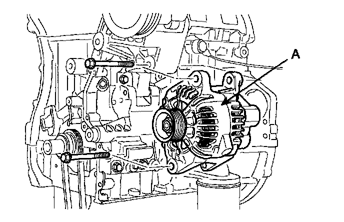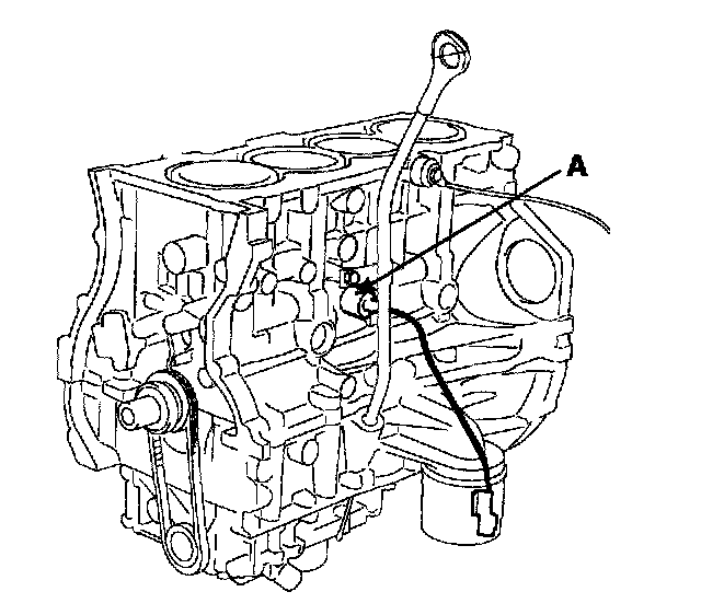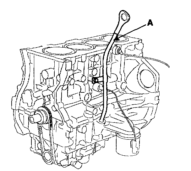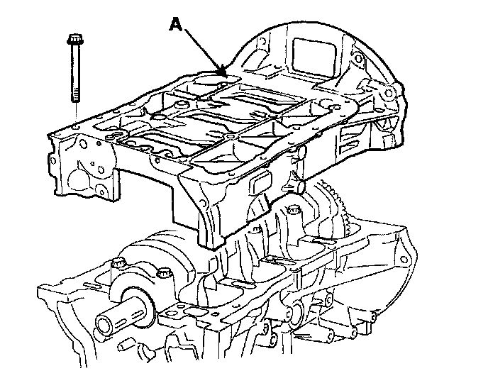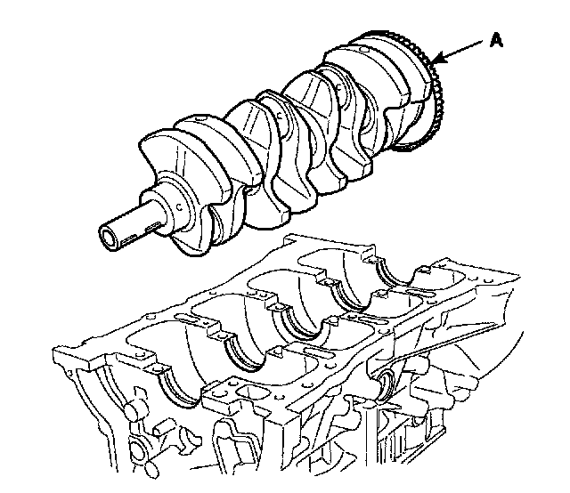 22. Lift the crankshaft (A) out of the engine, being careful not to damage journals.