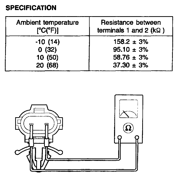 3. Check the resistance of ambient temperature sensor between terminals 1 and 2 whether it is changed by changing of the ambient temperature.