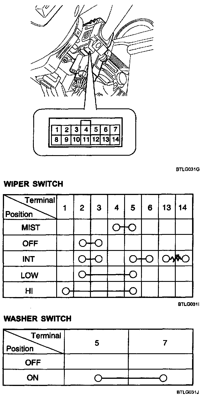 WIPER AND WASHER SWITCH INSPECTION