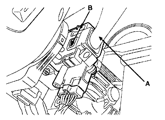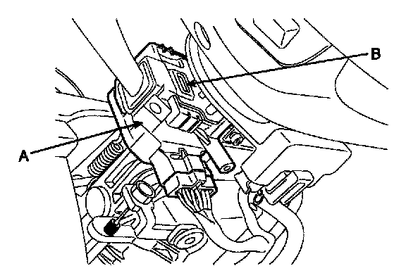 4. Remove the wiper switch (A) by pushing the lock pin (B) after disconnecting the connector.