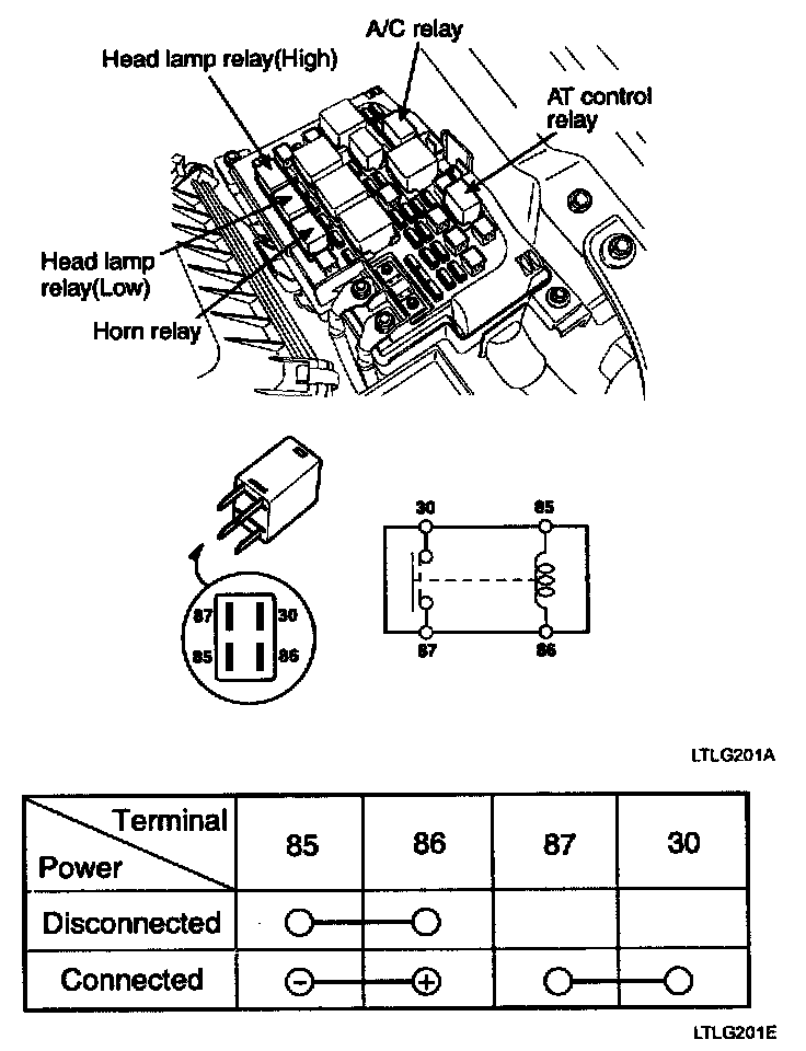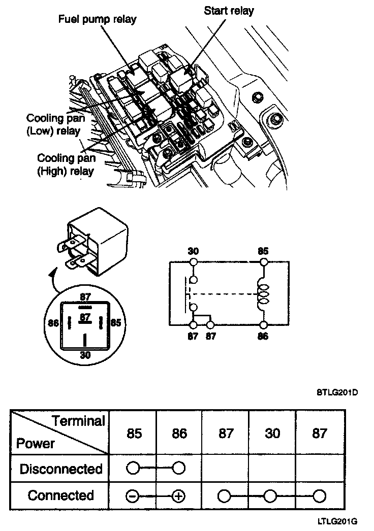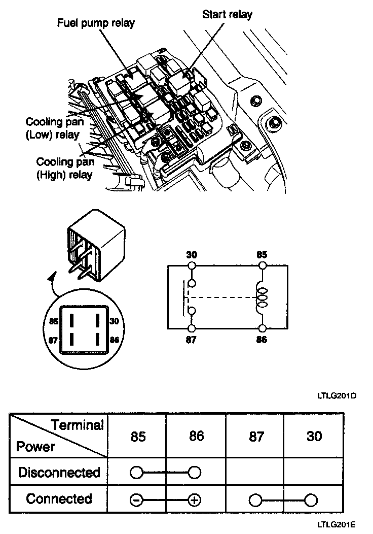 1. There should be continuity between the No.30 and No.87 terminals when power and ground are connected to the No.85 and No.86 terminals.