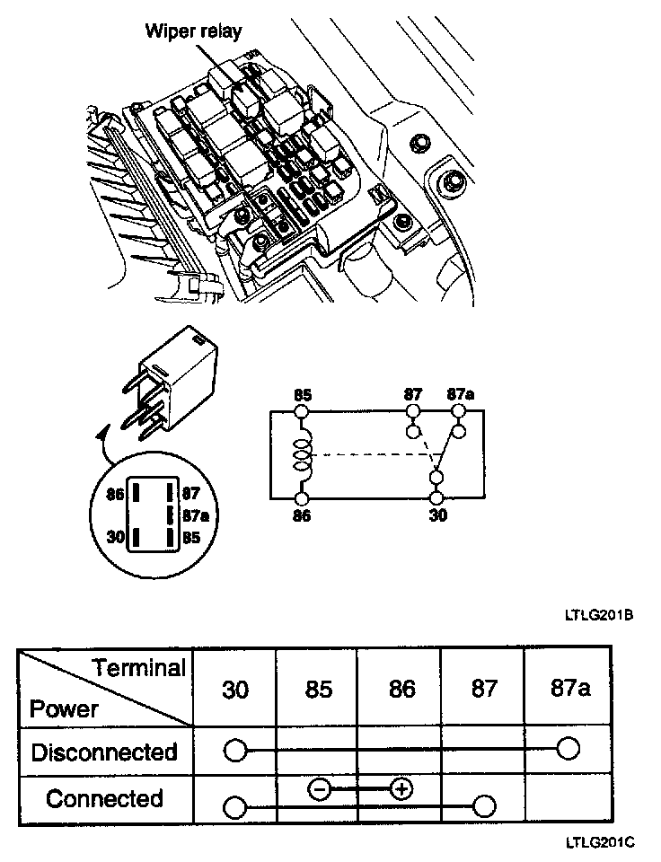 2. There should be continuity between the No.30 and No.87a terminals when power is disconnected.