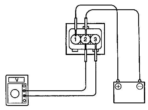 2. Connect the positive (+) lead from tester to terminal 3 and the negative (-) lead to terminal 2.