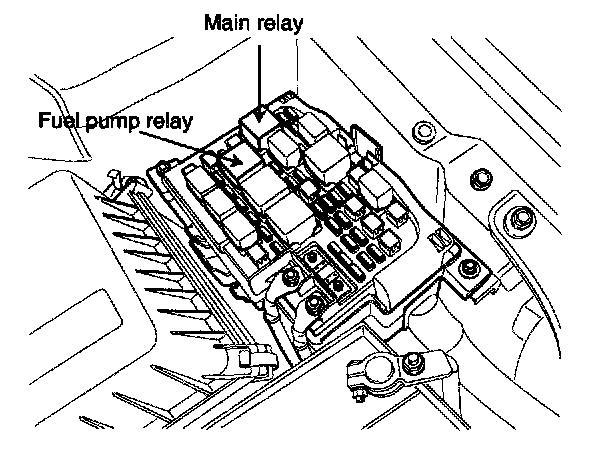 NOTE: To prevent fuel being injected from injectors while the engine is being cranked, remove the fuel pump (A) relay from the fuse box.