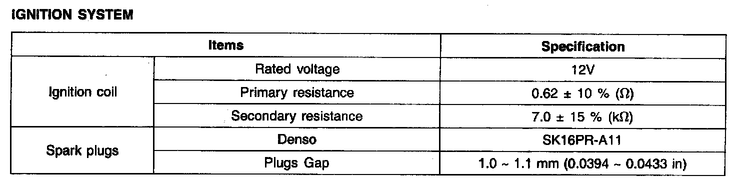 Ignition System - Specification: