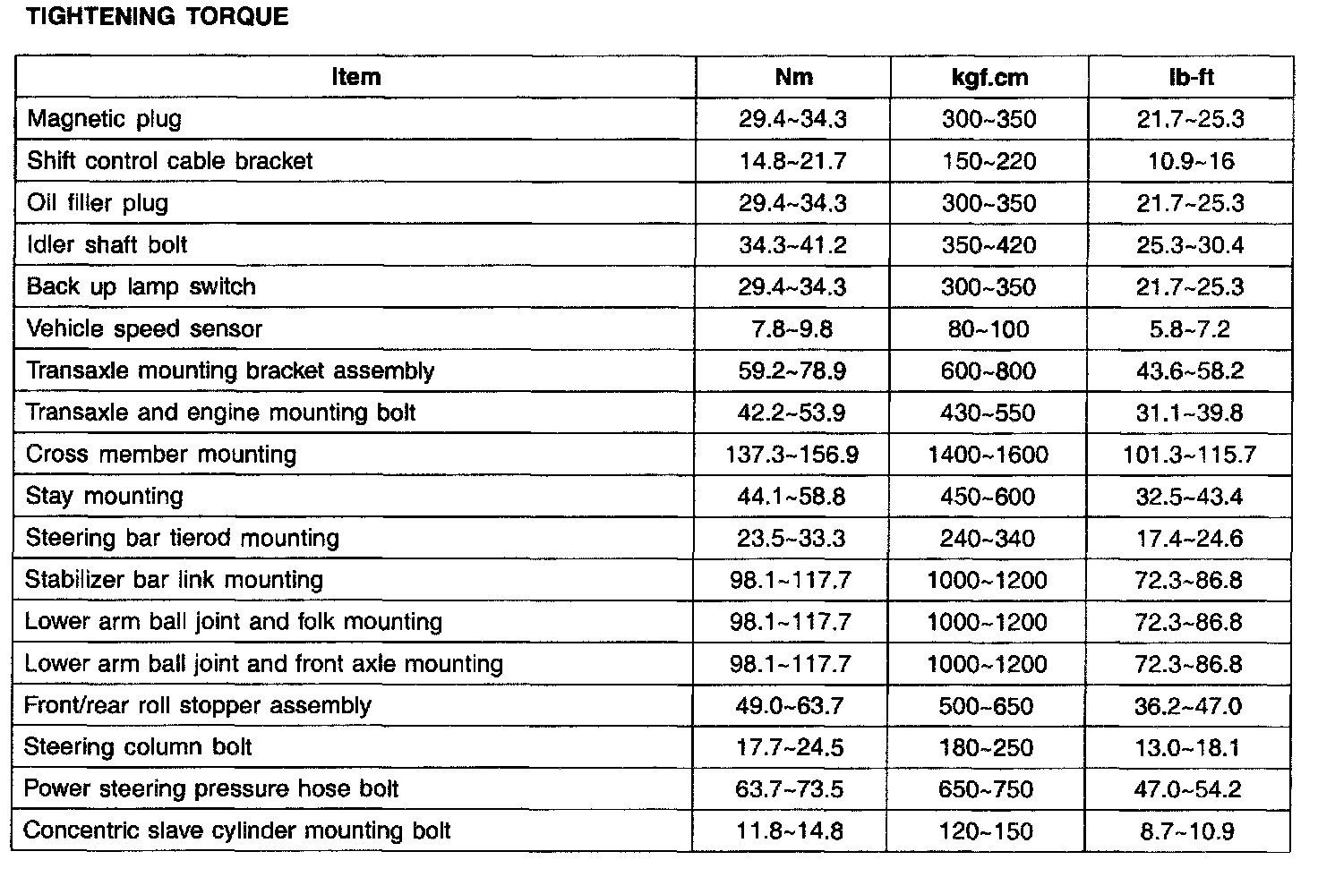 Tightening Torque