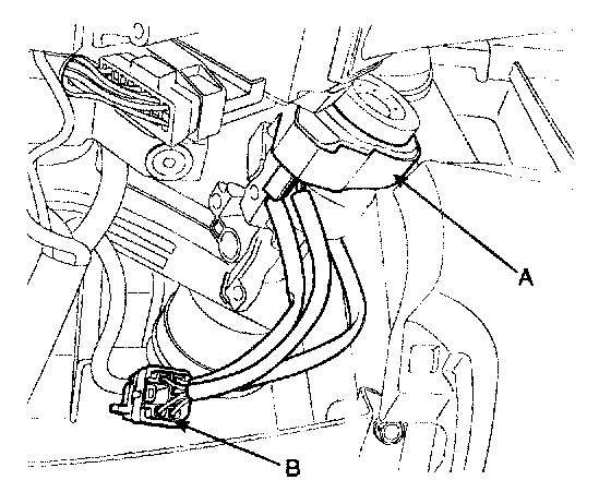 2. Remove the driver lower crash pad panel (A) and shroud lower panel (B).