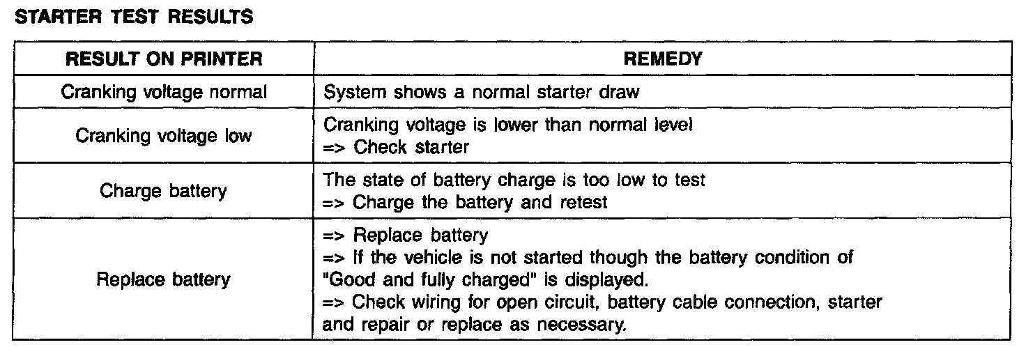 3. Cranking voltage and starter test results will be displayed on the screen.