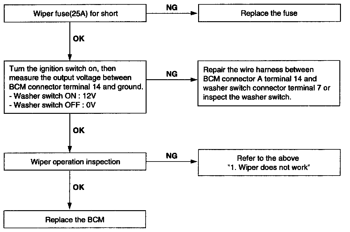 When washer switch is on, wiper does not work.