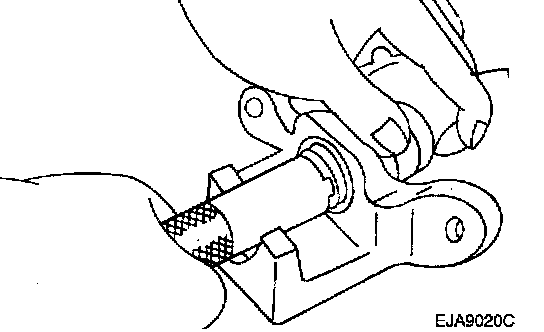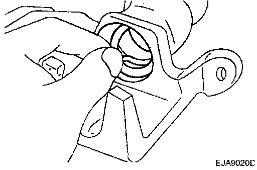 1. Remove the caliper support bolts, then raise the caliper assembly upward and secure by using wire.