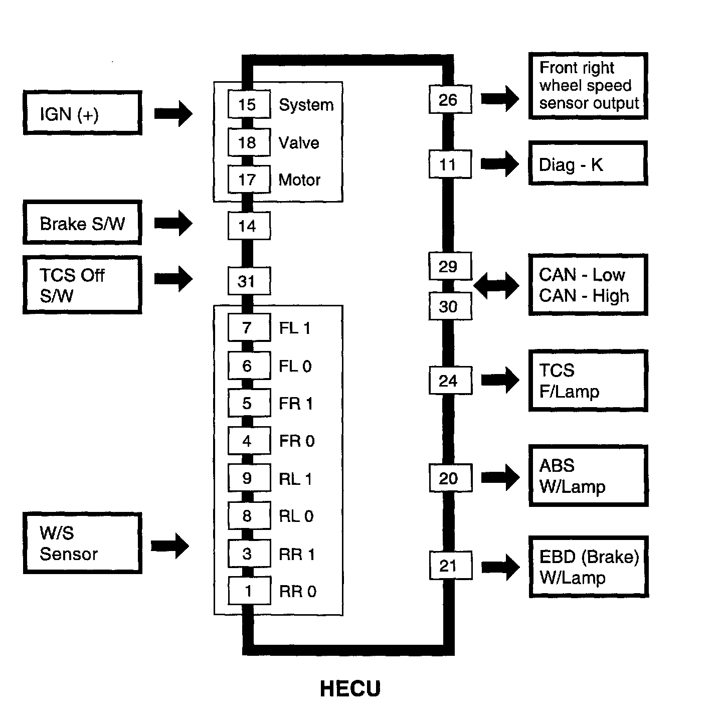 DIAGRAM OF INPUT/OUTPUT FOR HECU