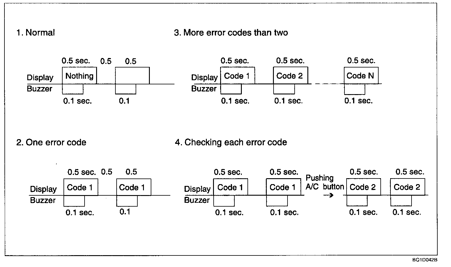 1. A/C system is turned OFF during self diagnosis. The result of self diagnosis is displayed using 2 digits of the temperature display.