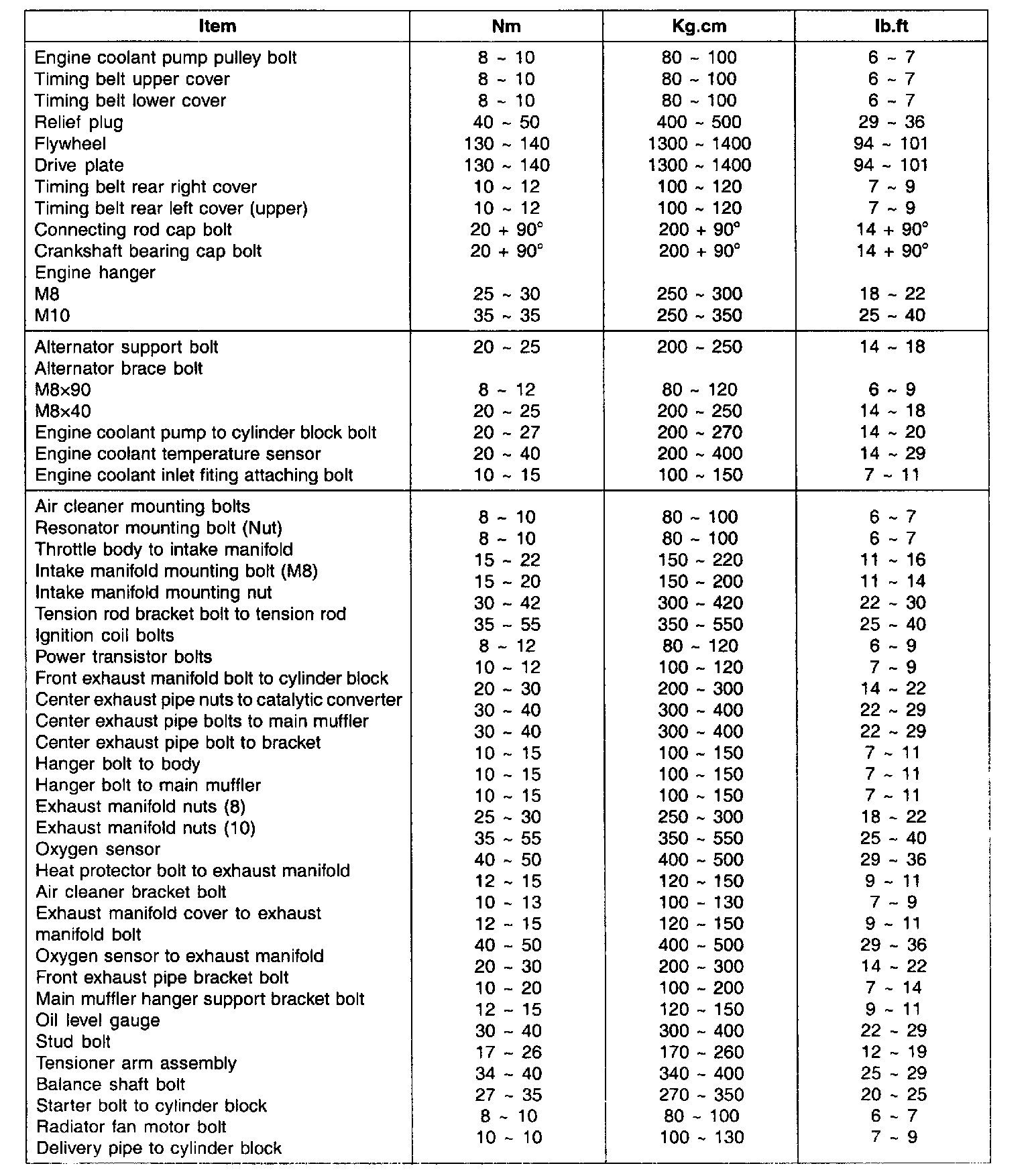 Torque Specifications