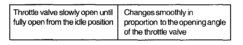 Throttle valve slowly open until fully open from the idle position Changes smoothly in proportion to the opening angle of the throttle valve