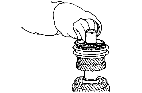 9. Install the 4th speed gear, the 5th speed gear sleeve, the needle roller bearing, the 5th speed gear, the synchronizer ring (5th), the synchronizer hub and the sleeve (5 & R).