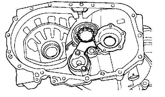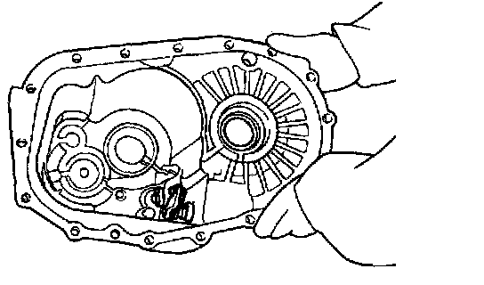 12. Assemble the clutch housing and the transmission case with the snap ring extended.