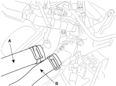 3. Disconnect the radiator upper and lower hose(A, B).