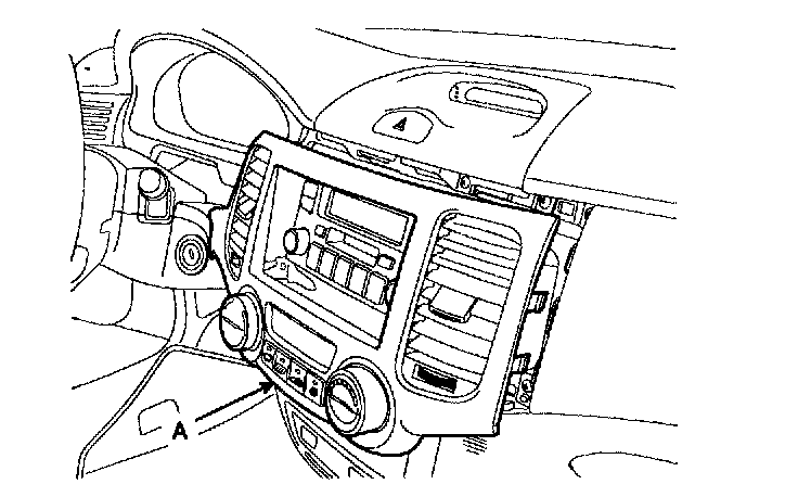 1) Using a clip remover, and remove the center facia panel (A).