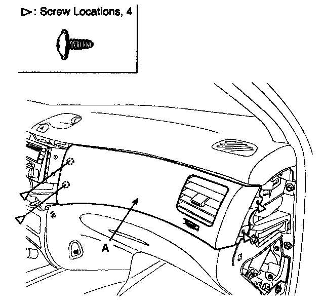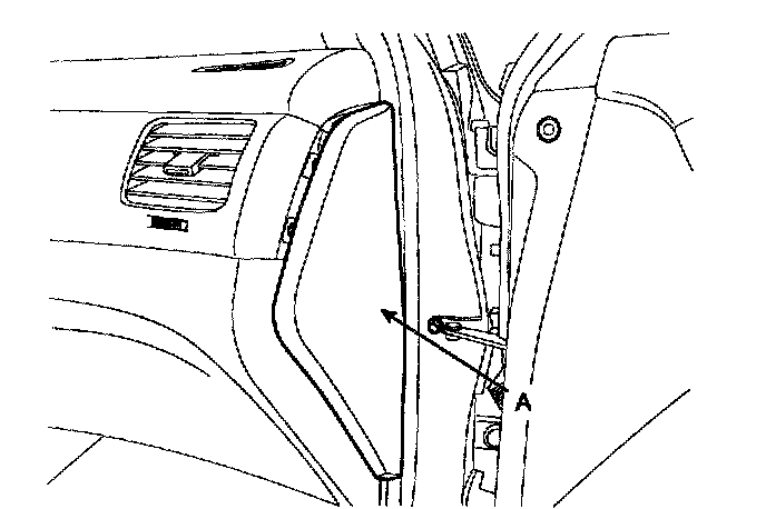 2) Remove the crash pad side cover (A).