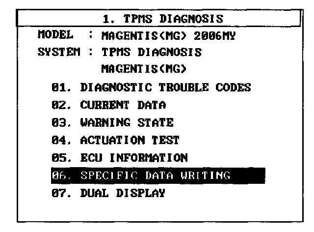 7. Read sensor's ids with the 'TPMS exciter'. (Refer to 'SENSOR INITIATING PROCEDURE')