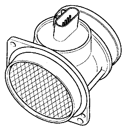 Mass Air Flow Sensor (MAFS) is a hot-film type sensor and is located in between the air cleaner and the throttle body. It consists of a tube, a sensor assembly and honeycomb cell and detects intake air quantity flowing into the intake manifold. Air flows from the air cleaner assembly through the honey comb cell and over the hot film element. At this time, heat transfer is generated by convection and this sensor loses its energy. This sensor detects the mass air flow by using the energy loss and transfers the information to the PCM by frequency. The PCM calculates fuel quantity and ignition timing.
