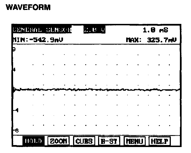 The above waveform shows the signal waveform of knock sensor when knock doesn't happen. Generally, knock signal has more noise than other sensor.