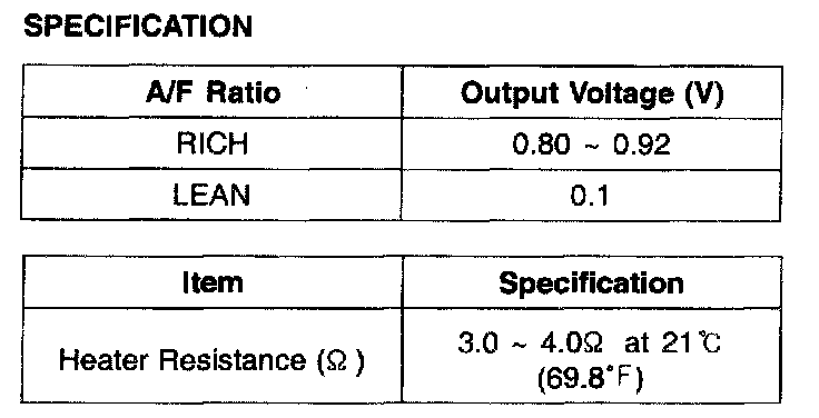 Heated Oxygen Sensor (HO2S) consists of zirconium and alumina and is installed on upstream and downstream of the Manifold Catalyst Converter (MCC). After it compares oxygen consistency of the atmosphere with the exhaust gas, it transfers the oxygen consistency of the exhaust gas to the PCM. When AIF ratio is rich or lean, it generates approximately 1 V or 0 V respectively. In order that this sensor normally operates, the temperature of the sensor tip is higher than 370 degrees C (698 degrees F). So it has a heater which is controlled by the PCM duty signal. When the exhaust gas temperature is lower than the specified value, the heater warms the sensor tip.