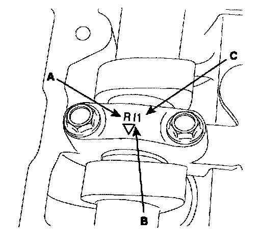 NOTE: When installing the bearing caps, check the marks on them as shown and install them in its proper position.