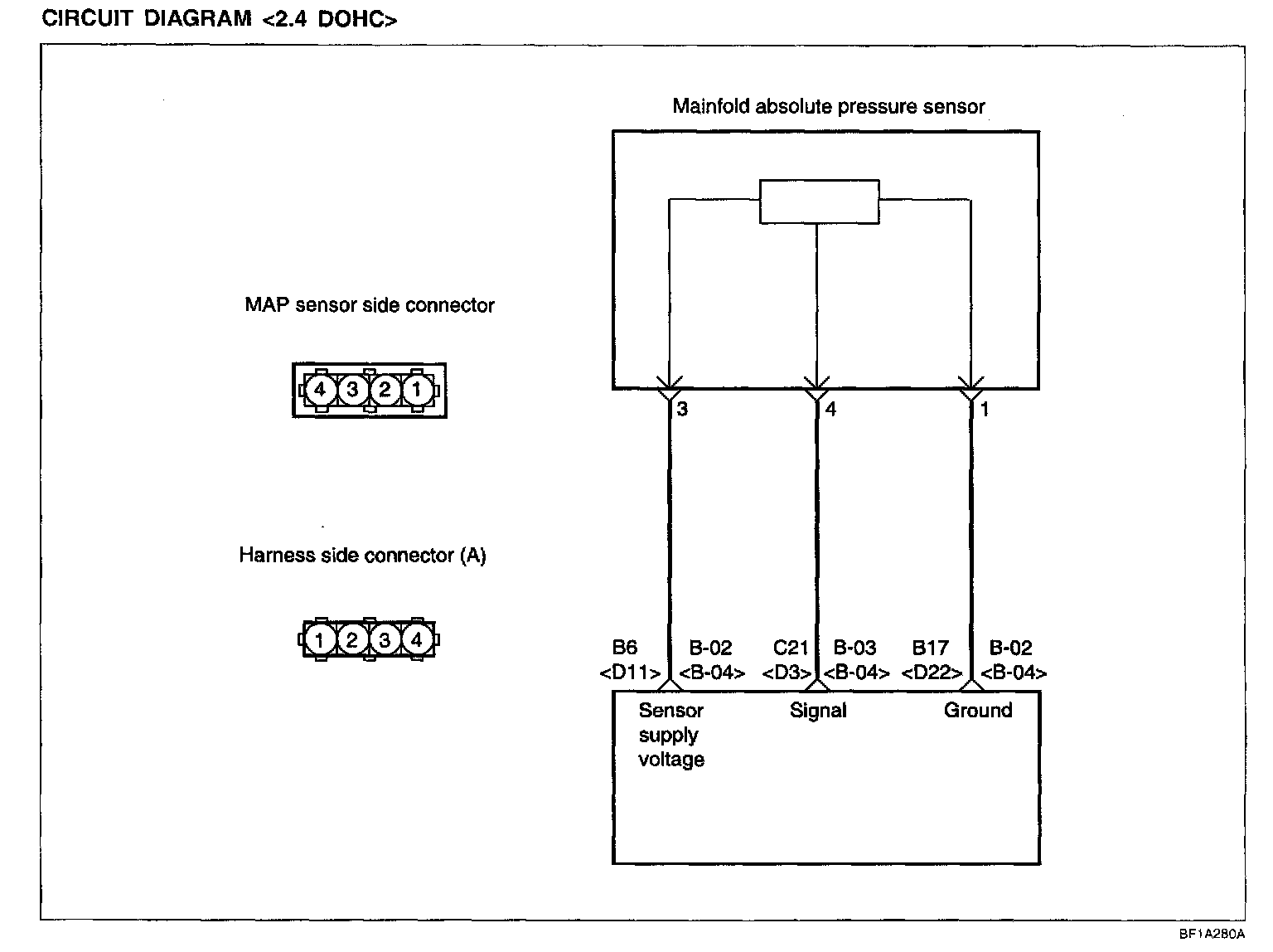 1. Connect the voltmeter between 1 and 4 of MAP sensor connector.