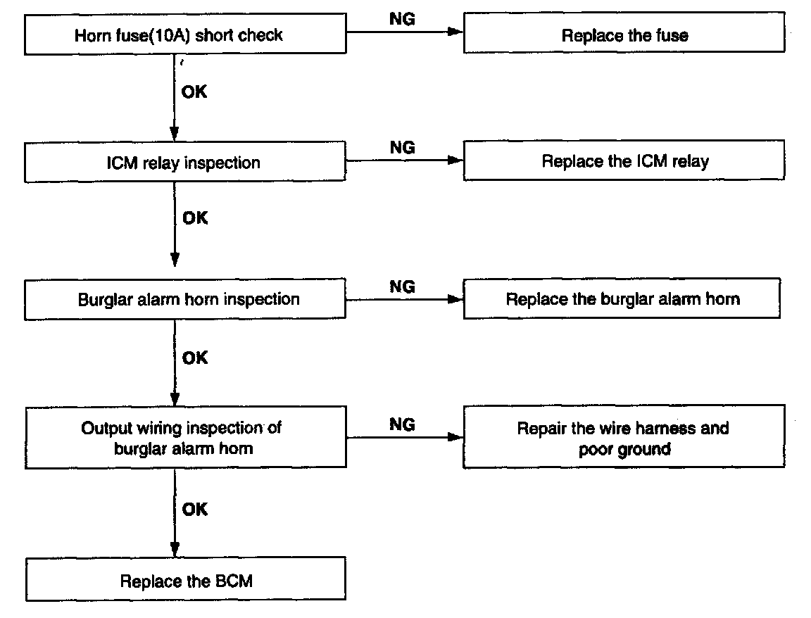 3. When door is opened in ARM mode, burglar horn does not work (If tailgate and hood is opened, alarm works)