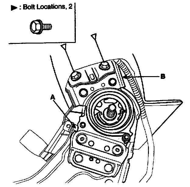 3. Disconnect the seat back frame (B) from seat track assembly (A).