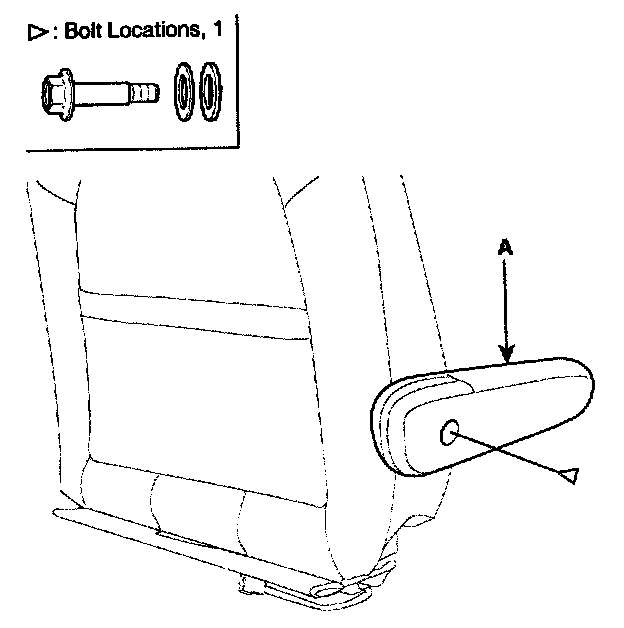 4. After loosening the mounting screw, remove the front seat armrest (A).