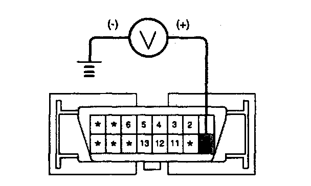 Measure the voltage between terminal 9 of the data link connector and body ground.