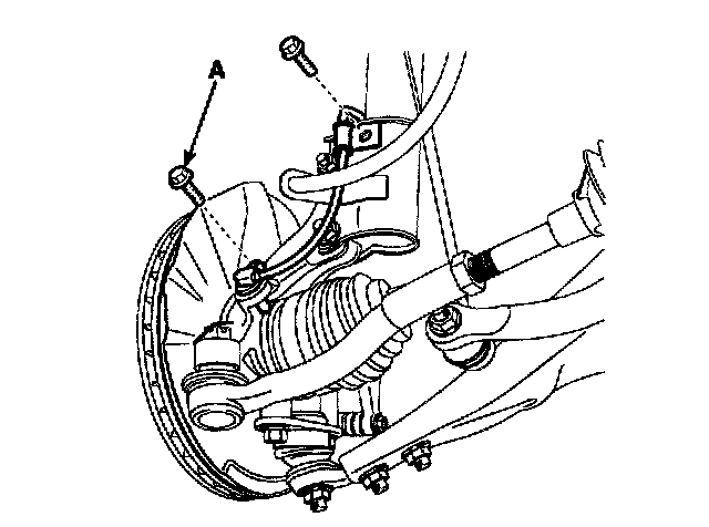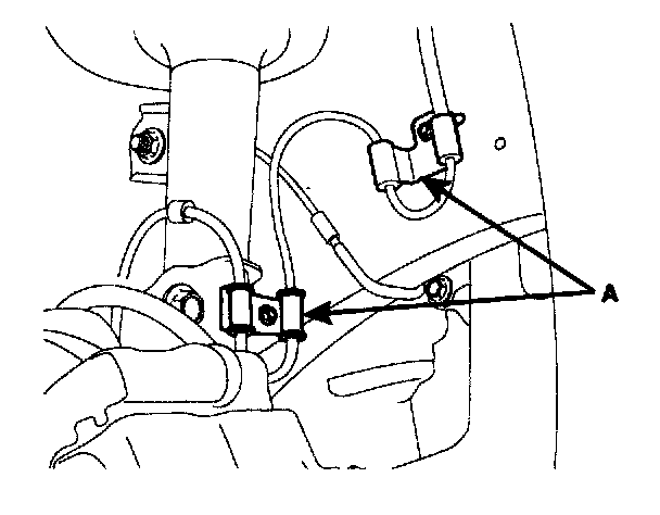 1. Remove the front wheel speed sensor mounting bolt (A).