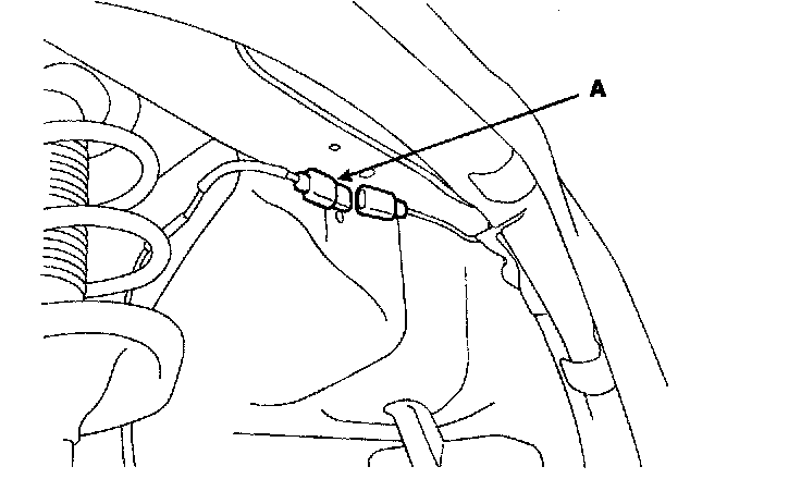 4. Disconnect the front wheel speed sensor connector (A), then remove the front wheel speed sensor.