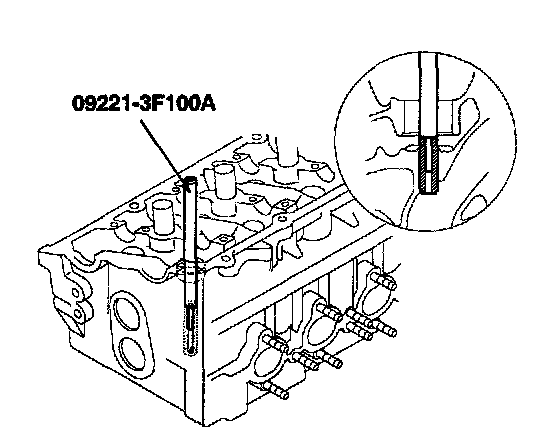 1. Using the SST (09221-3F100A), withdraw the old valve guide toward the bottom of cylinder head.