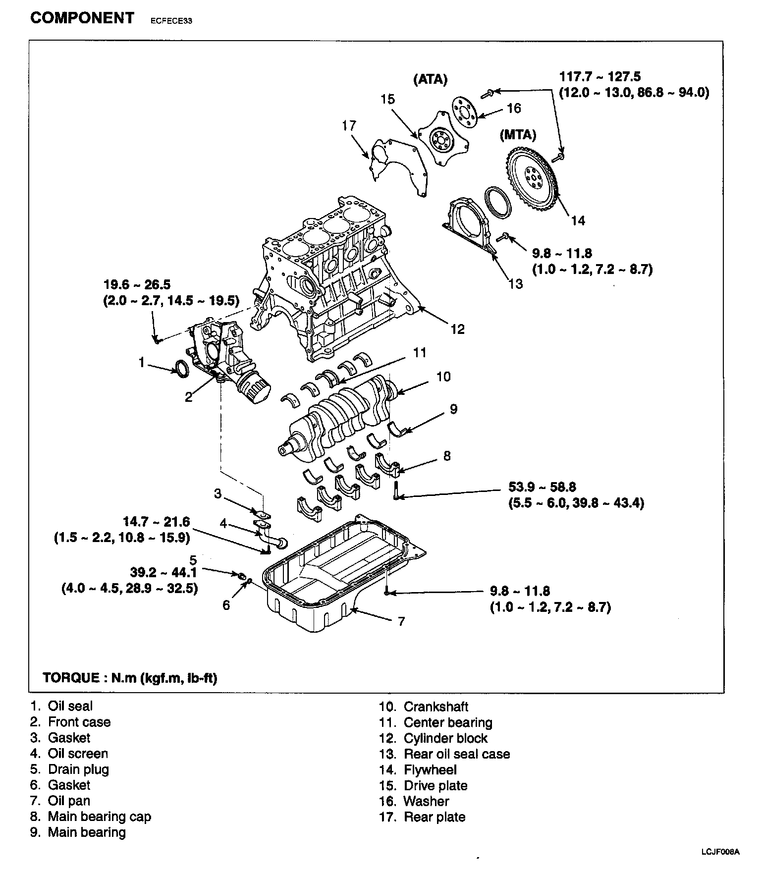 17. Remove the crankshaft bearing cap and check oil clearance.
