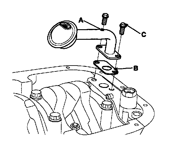 Remove the 2 bolts (C), oil screen (A) and gasket (B).