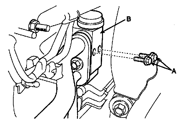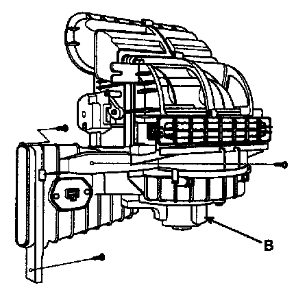 4. Remove the bolts (A) and the expansion valve (B) from the evaporator core.