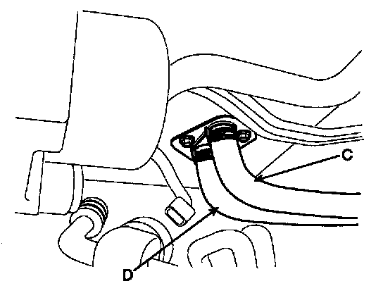 5. Disconnect the inlet (C) and outlet (D) heater hoses from the heater unit.