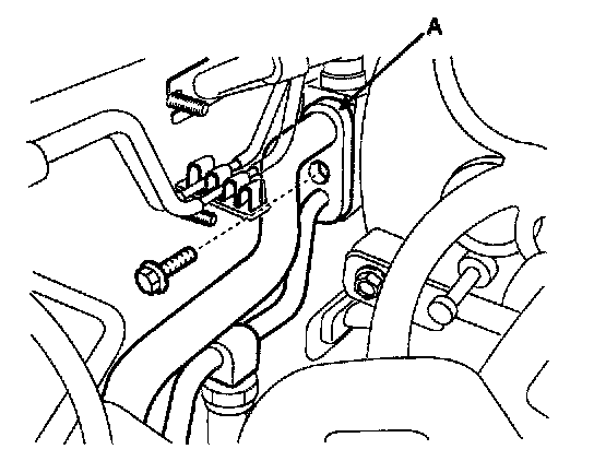 6. Remove the A/C pressure transducer (B) while holding on to the fitting block (A).