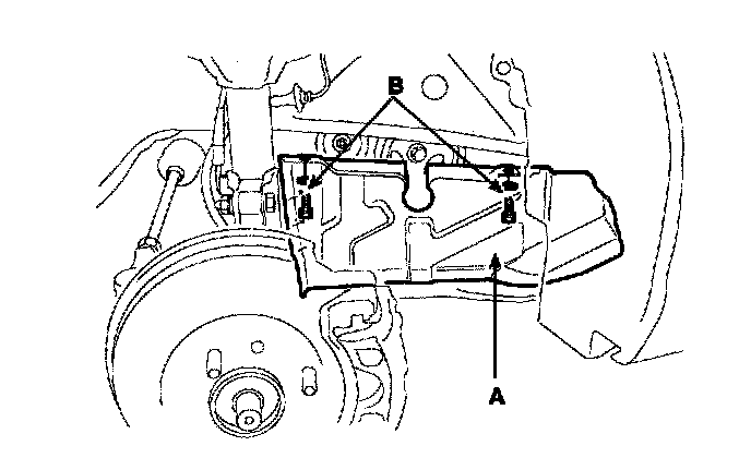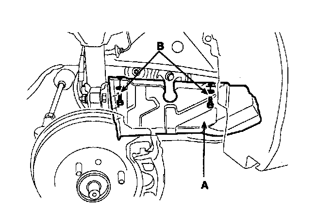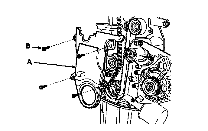 12. Remove the 4 bolts (B) and timing belt lower cover (A).