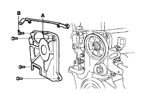 9. Remove the 4 bolts (B) and timing belt upper cover (A).