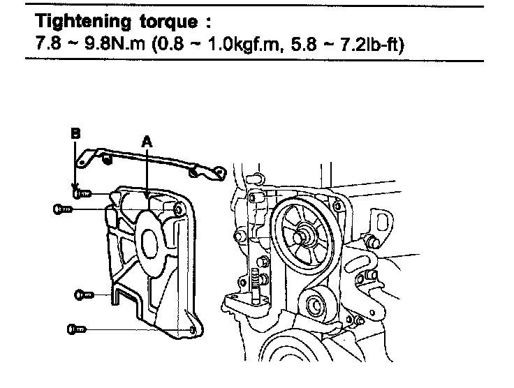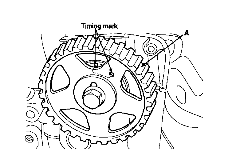 3) After checking the alignment between each sprocket and each timing belt tooth, tighten the mounting bolt (A) and (B) one by one.