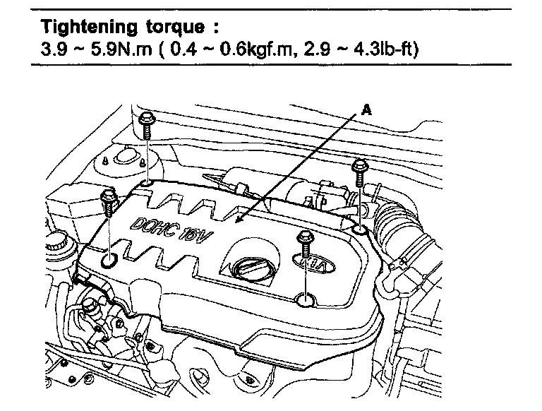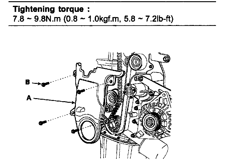 TIMING BELT TENSION ADJUSTMENT1. Remove the engine cover (A).
