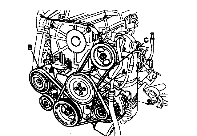 7. Remove the power steering pump drive belt (C).