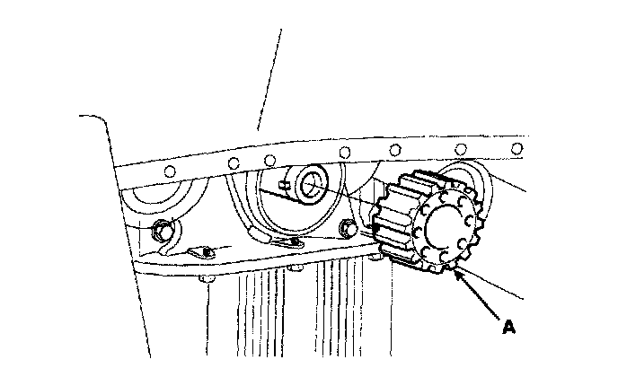16. Remove the crankshaft sprocket (A)