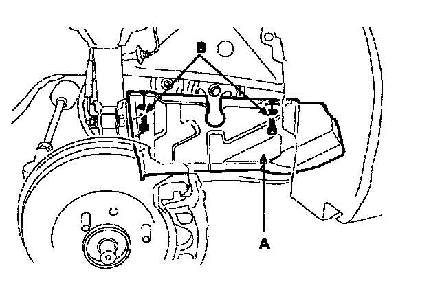 13. Remove the 4 bolts (B) and timing belt lower cover (A).